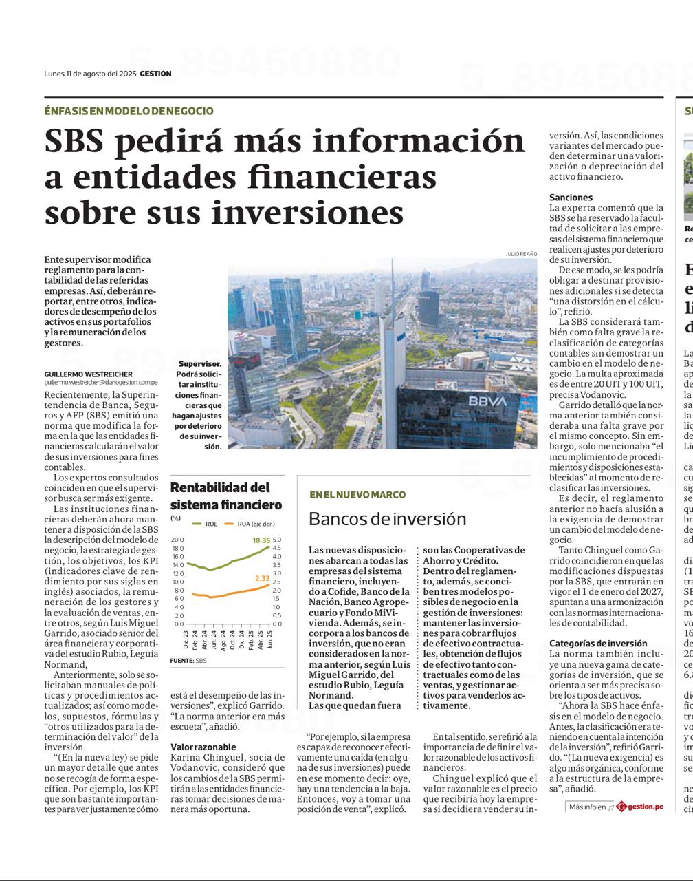 SBS pedirá más información a entidades financieras sobre sus inversiones